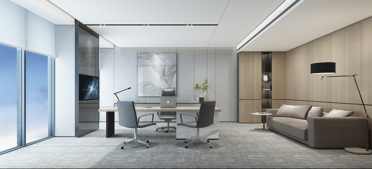 本案采用簡約風(fēng)格,本風(fēng)格逐漸成為辦公室裝修的主流。它注重線條簡潔、色調(diào)溫和,給人帶來簡單、舒適、自然、高品質(zhì)的感覺。我們可以考慮采用工作臺(tái)和柜子的簡潔設(shè)計(jì),用統(tǒng)一的顏色調(diào)和它們之間的關(guān)系。此外,可以設(shè)置以木質(zhì)為基礎(chǔ)的裝飾品來提升整體感受。