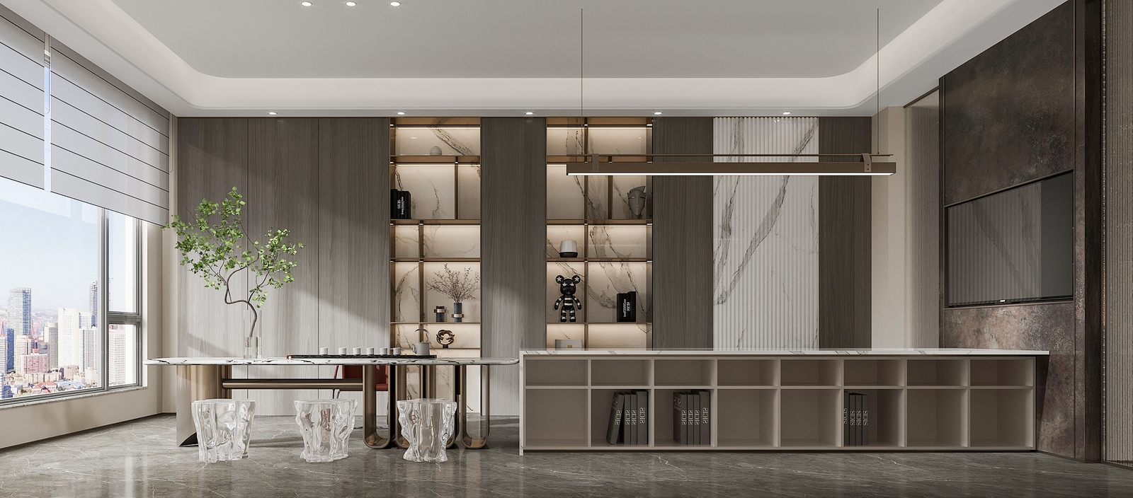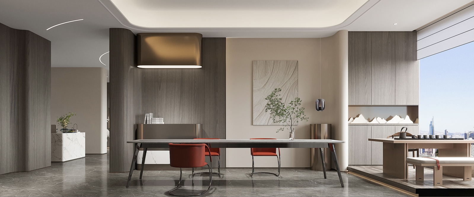 設(shè)計師以“現(xiàn)代輕奢”為設(shè)計理念,將簡約、精致、高品質(zhì)的元素融入整個辦公空間。通過獨特的材質(zhì)選擇、色彩搭配和燈光設(shè)計,營造出既舒適又高效的辦公環(huán)境,讓員工在緊張的工作中也能感受到放松和愉悅。