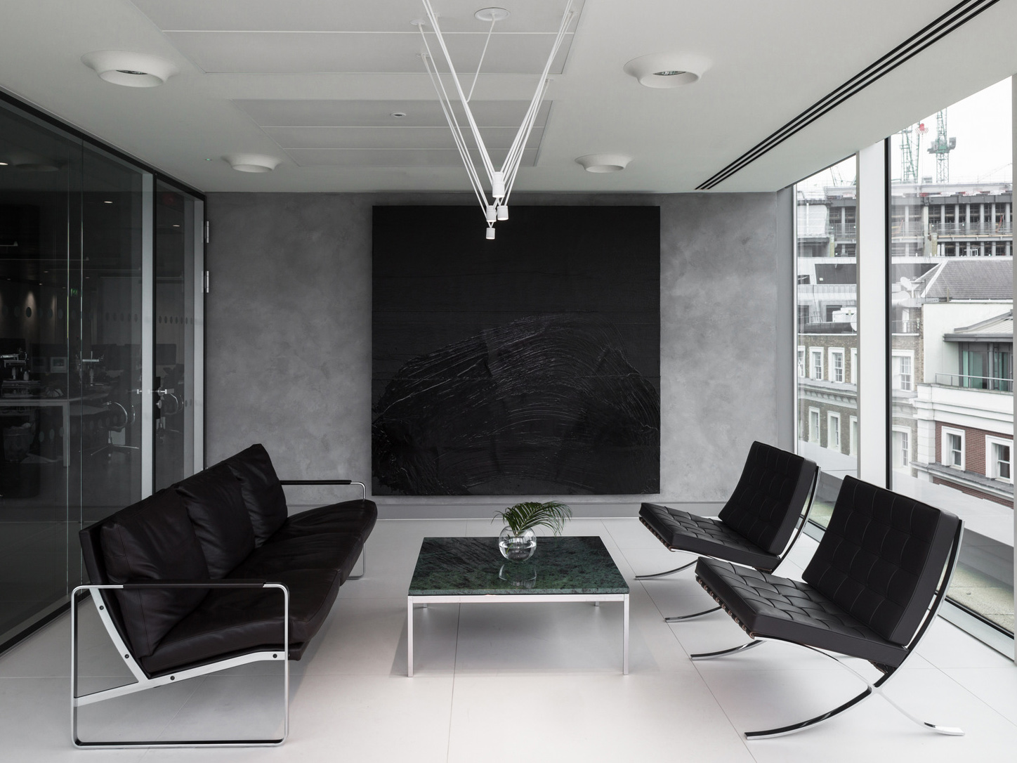 設(shè)計師在設(shè)計中注重細(xì)節(jié)處理,將黑白元素巧妙地融入各個空間。例如,在接待我和辦公桌椅的設(shè)計中,都采用了白色框架和黑色表面的組合方式,使整個空間更加協(xié)調(diào)統(tǒng)一。