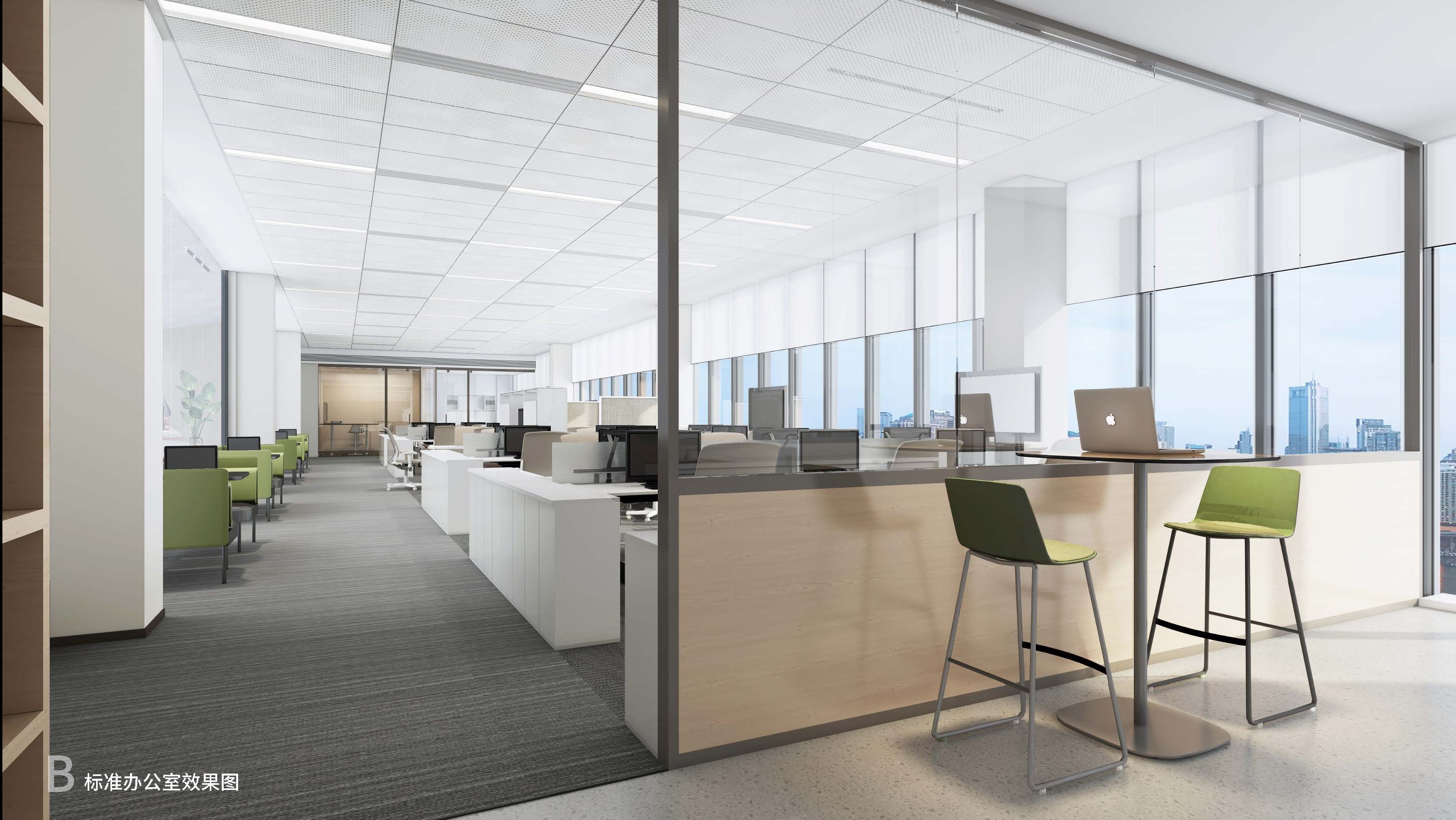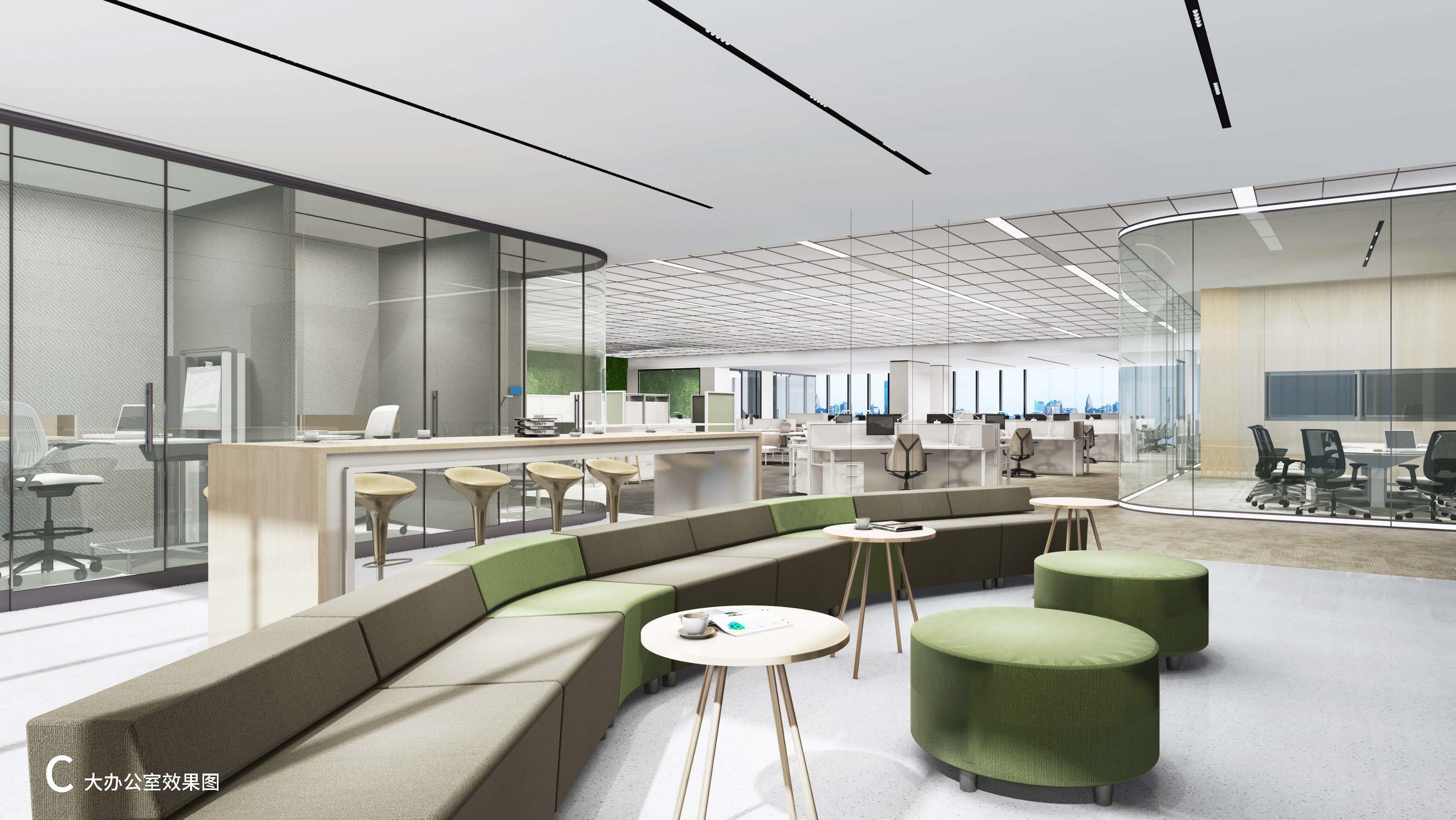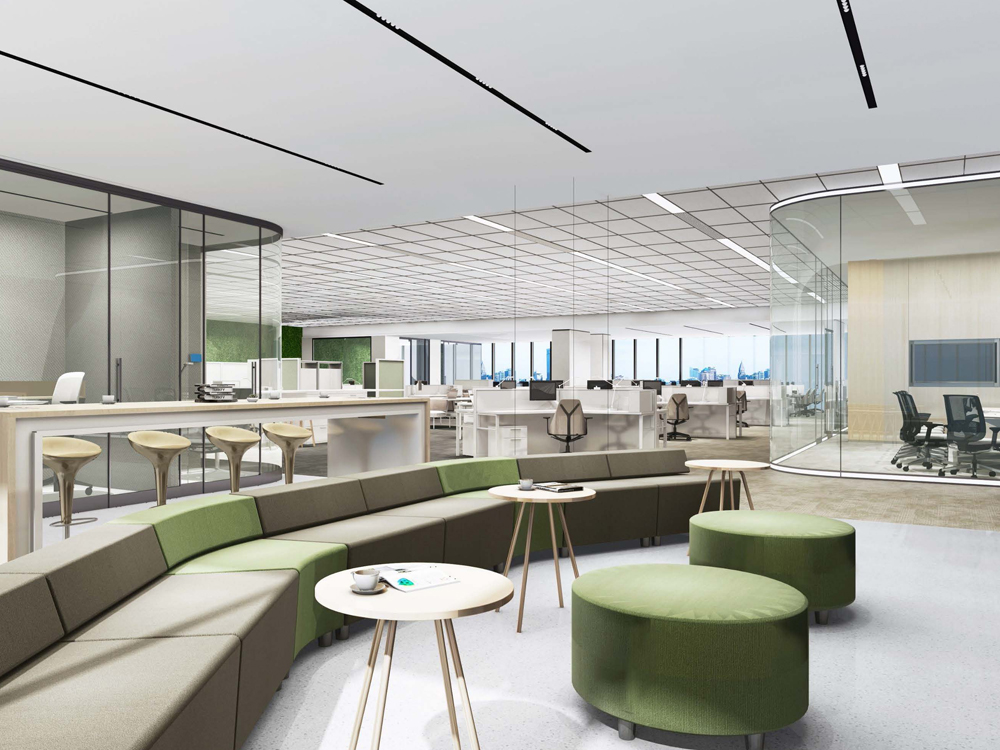 辦公空間也使用了大量的中性色,不同與大廳,這里使用果綠色來搭配,視覺上會給人清爽年輕活力奔放的感覺。