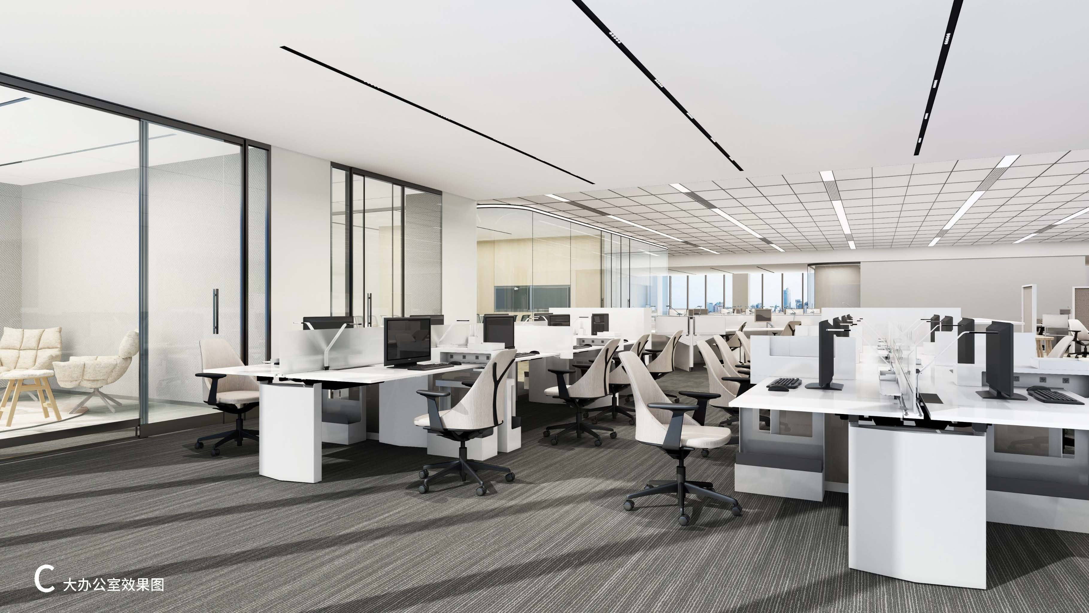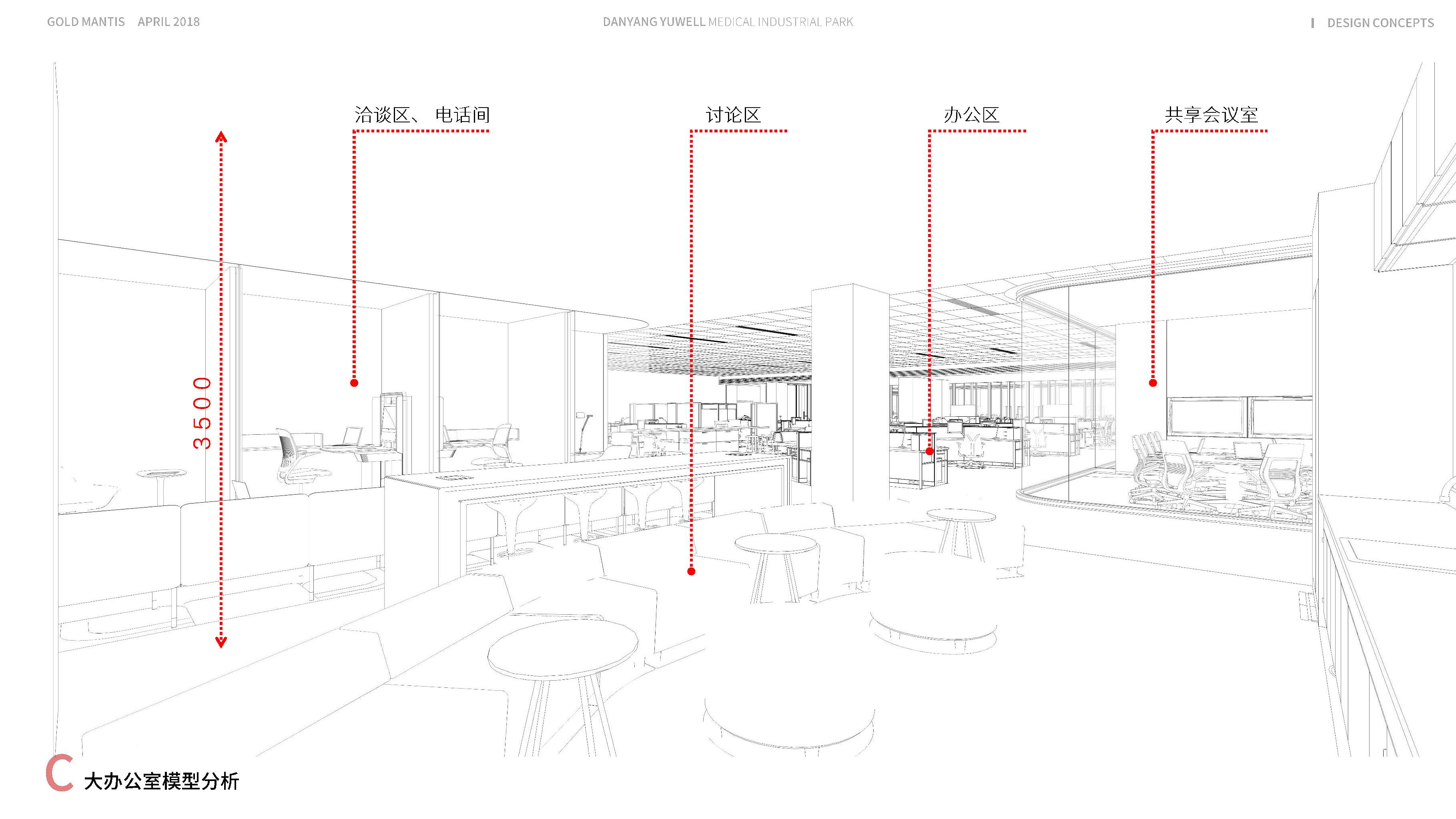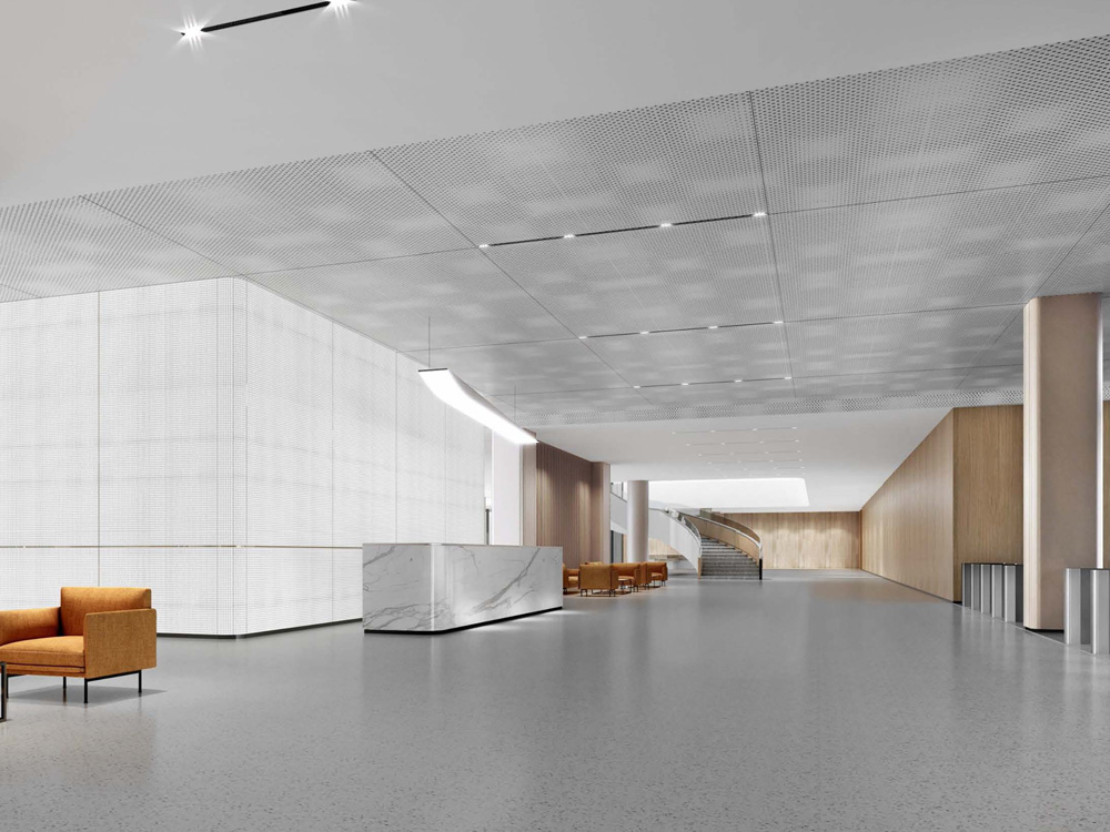 項目概括:本案為某醫(yī)療產(chǎn)業(yè)園辦公樓裝修,規(guī)劃為一層休息大廳、研發(fā)辦公室,二、三及四層分別為大型辦公室、中型辦公室及會議室等功能布局。一層主要裝飾材料為:穿孔石膏板、灰色水磨石、穿孔鋁板及一些金屬板做裝飾;二、三及四層采用穿孔石膏板、白色水磨石、地毯及淺色木飾面點綴。