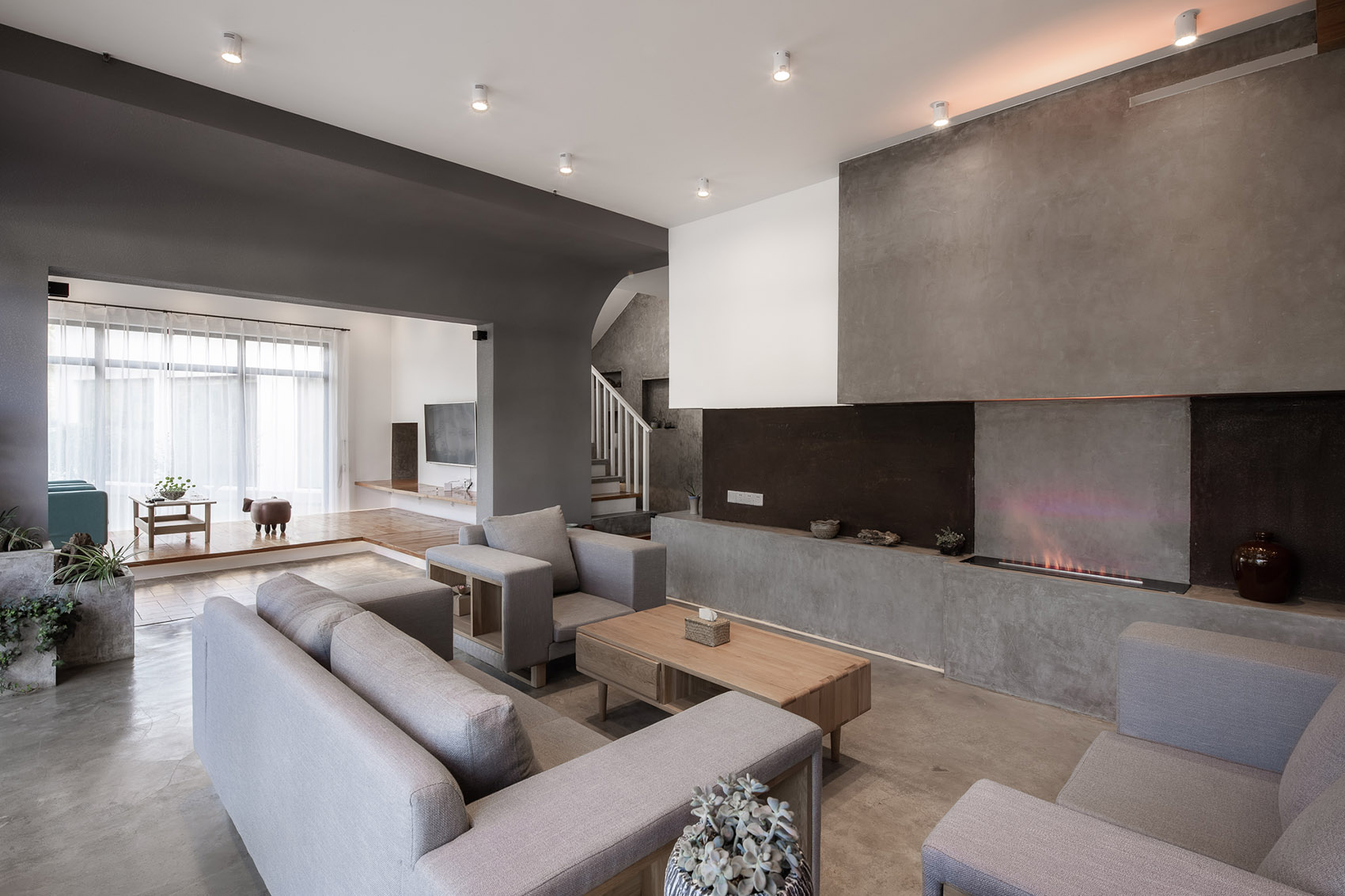 空間以舒適、典雅及樸實的度假風(fēng)表達,同時加入當(dāng)?shù)匚幕右匝由欤箍臻g更顯在地性。色調(diào)以高貴典雅的灰色與自然的木色結(jié)合,如同在空間中探秘一般,層層遞進,探索感與興奮感油然而生。