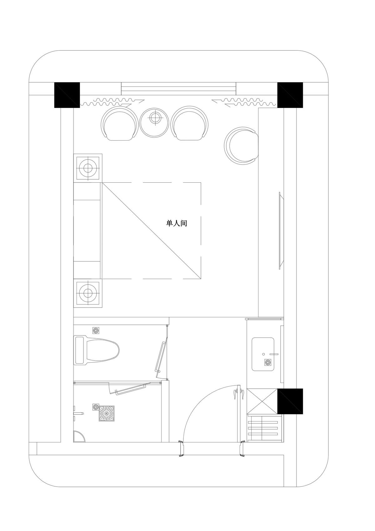 單人間客房平面圖