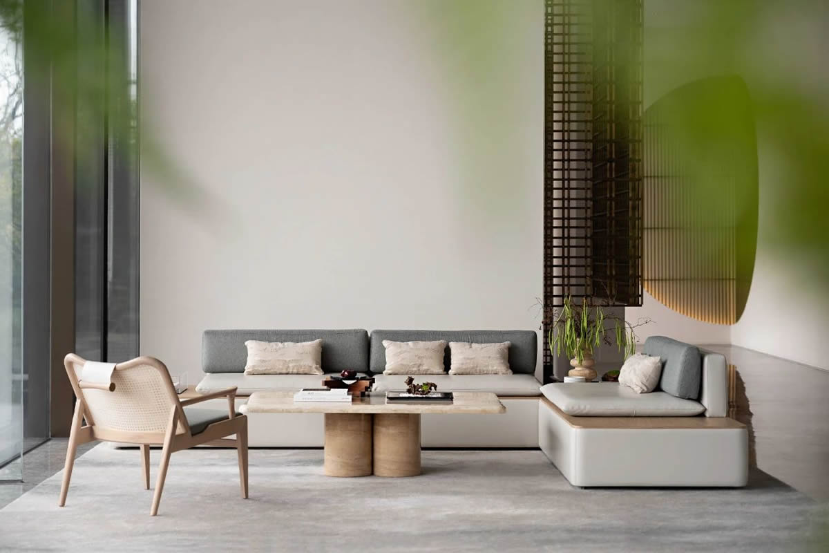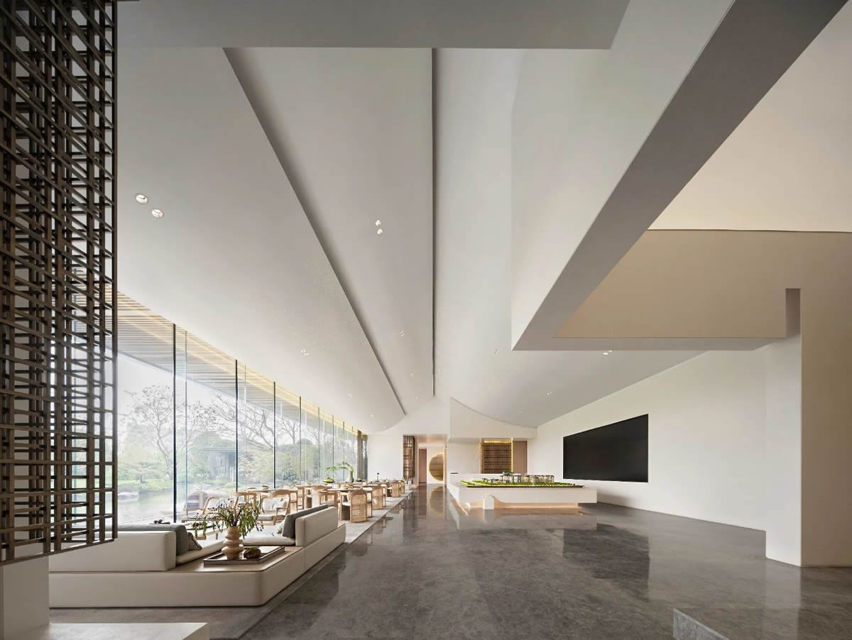 設(shè)計(jì)師用極簡(jiǎn)和回歸自然的設(shè)計(jì)語言表達(dá)著對(duì)大自然的敬畏。并非純粹只是一個(gè)銷售點(diǎn),它更多的是為有意購房的客戶營(yíng)造一個(gè)內(nèi)容豐富、氛圍輕松的體驗(yàn)空間。