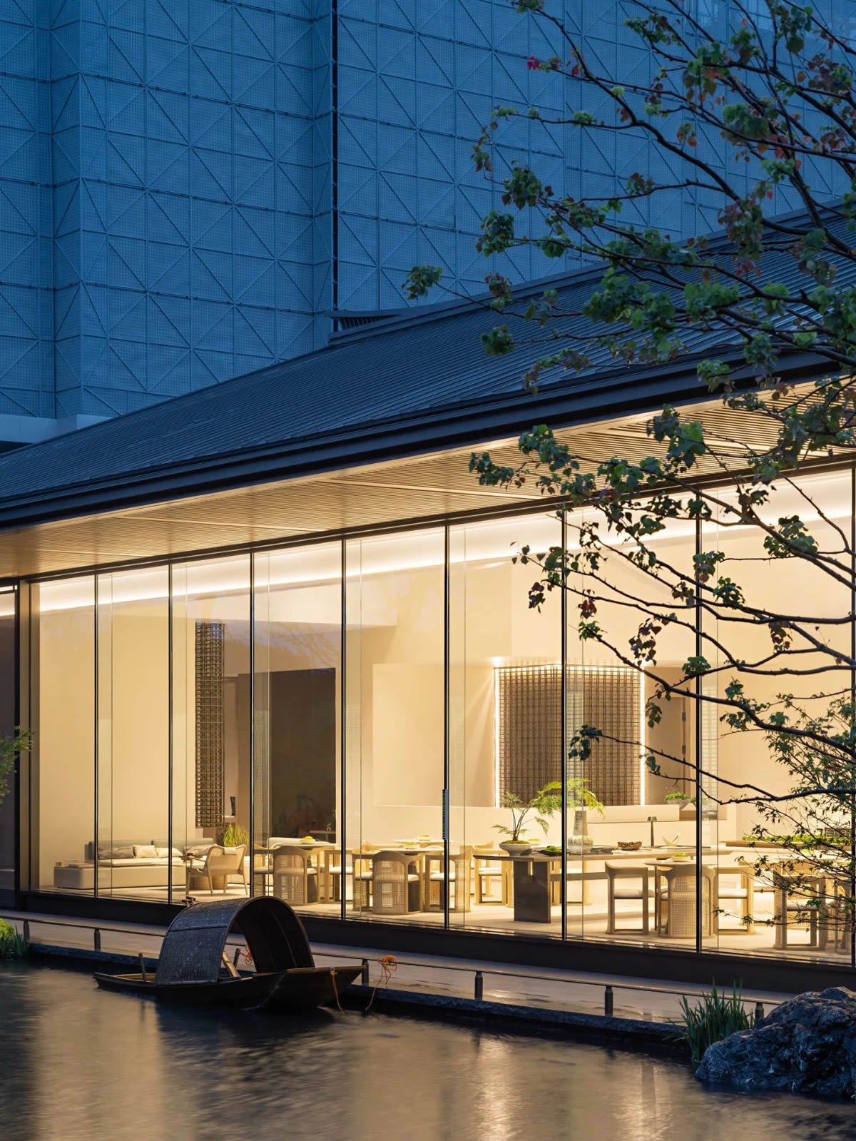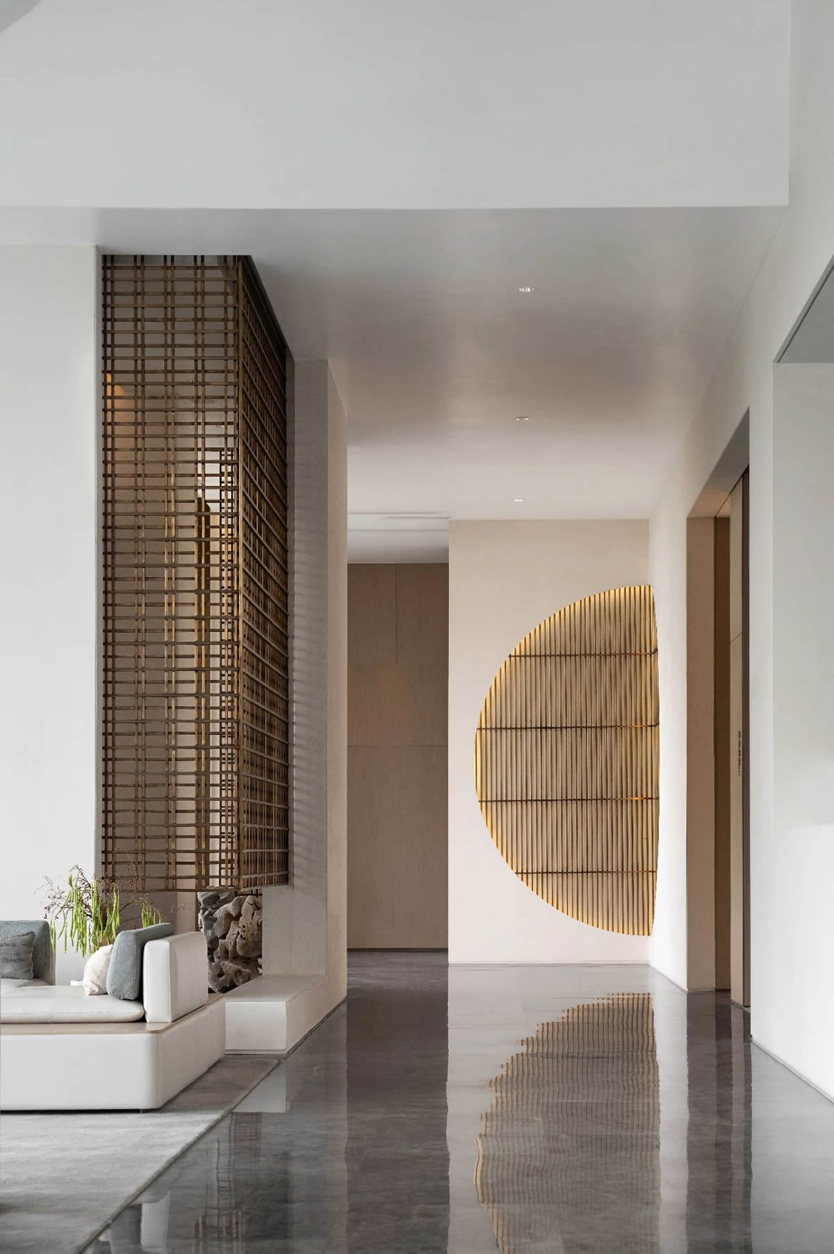 用白墻、金屬隔斷、木色等,加上綠植帶的翠綠,在水吧區(qū)伸展開來,仿佛代表著傳統(tǒng)氣質(zhì)的傳達(dá)與延續(xù),更是地域風(fēng)格與設(shè)計(jì)的重新演繹。