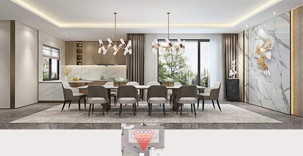 跟隨香氣的指引來(lái)到了餐廳,淡淡的玫瑰花香撲鼻而來(lái),餐桌上擺放著女主人精心擺放的花藝,與白色的餐具交相輝映,奇妙的光影營(yíng)造出浪漫溫馨的氣息。