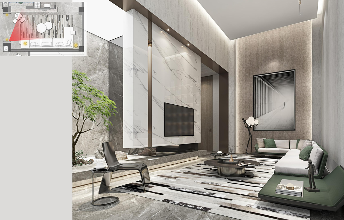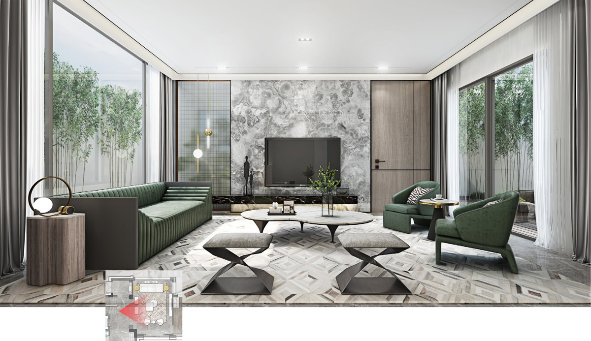 客廳里皮質(zhì)和布藝組合的高檔沙發(fā),彰顯主人獨(dú)特的品味,沙發(fā)前,異形的茶幾,獨(dú)特又兼具趣味性,是男主人喜歡的款式。抬眼看前方,一排排竹子仿佛置身竹林,寧靜而舒適。女主人拿起茶幾上的書,靜靜的閱讀,這是美好的一天,也是他們所向往的美好生活。
