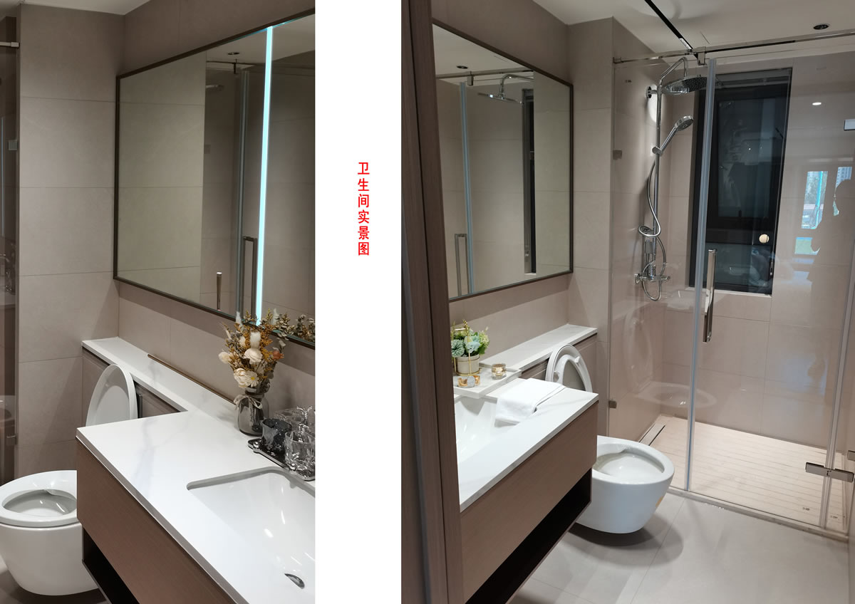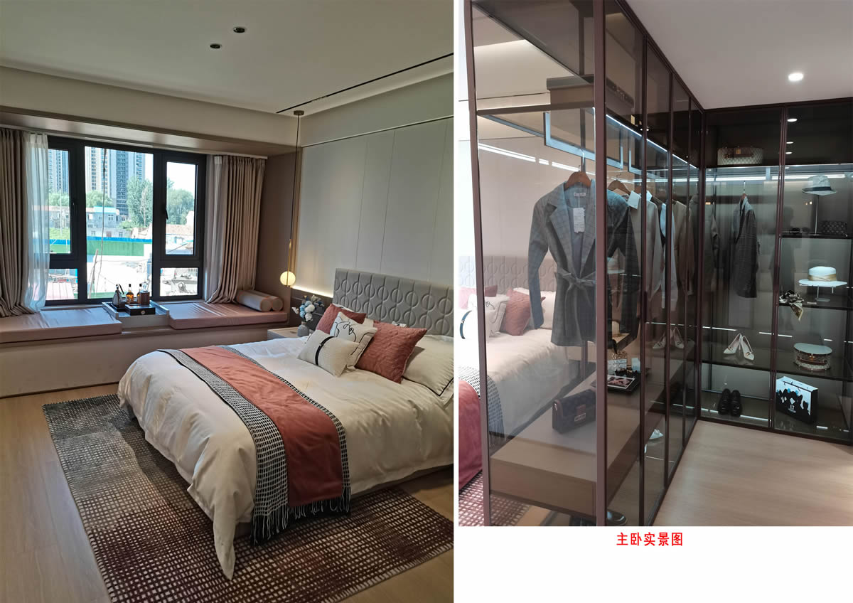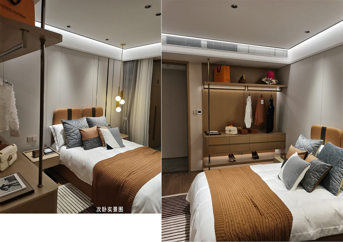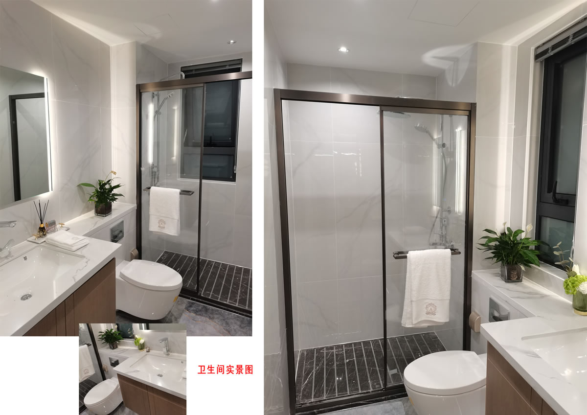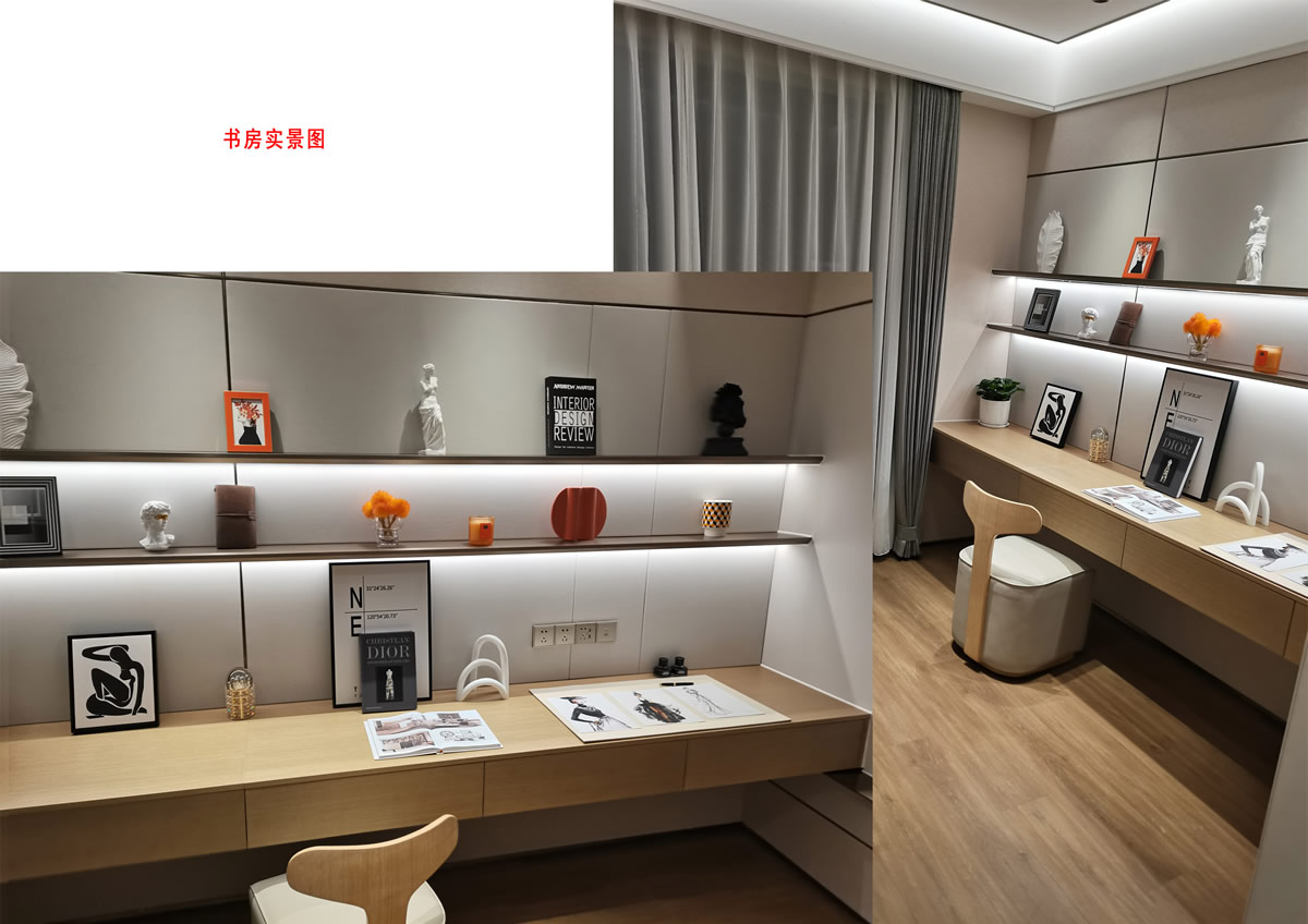 項目概況:本案位于淮北市濉溪縣二里莊,樣板間位于11號樓201與202室,規(guī)劃為客廳、餐廳、廚房、次臥、休閑陽臺 、外衛(wèi)、書房、主臥、主衛(wèi)等功能布局。主要裝飾材料如下:客餐廳、過道、房間為紙面石膏板吊頂,白色涂料飾面;衛(wèi)生間、廚房防水紙面石膏板吊頂,防水白色涂料飾面。客餐廳、過道墻面木工板基層,木飾面及布藝硬包飾面加不銹鋼造型線條裝飾;客廳電視背景鋼架及木工板基礎(chǔ),冷翡翠巖板飾面及不銹鋼展示柜裝飾;地面800地磚滿鋪。廚房、衛(wèi)生間墻面600*1200瓷磚滿鋪;地面、墻角防水滿刷,600*600地磚通縫鋪貼,淋浴區(qū)金鑲玉大理石地面拉槽。房間及書房背景木工板基層,皮質(zhì)硬包飾面加不銹鋼造型線條裝飾,其余墻面為墻布飾面;地面為實木多層地板鋪設(shè),極窄銅壓條收口。