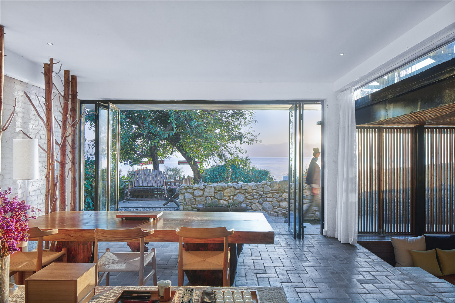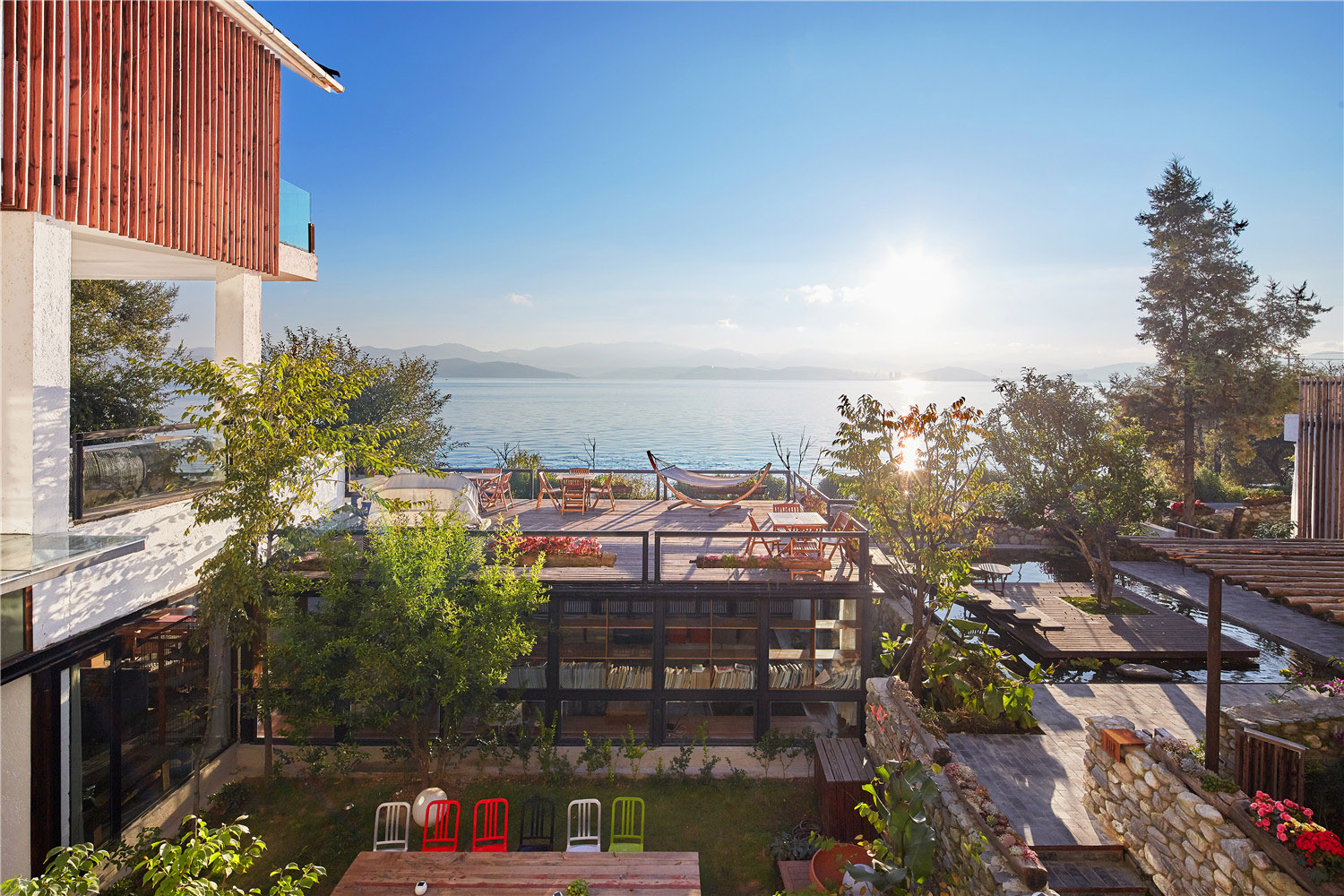 大理洱海環(huán)海西路葭蓬村是一個(gè)環(huán)洱海最小的自然村,村莊周圍環(huán)繞著獨(dú)有的自然景觀—海西濕地:楊柳垂蔭,蘆葦飛絮,水鳥游弋,天藍(lán)海清。整個(gè)村莊寧?kù)o秀美,五六間小客棧沿濕地岸線散布。在這些客棧里有一家有設(shè)計(jì)感的特別客棧。