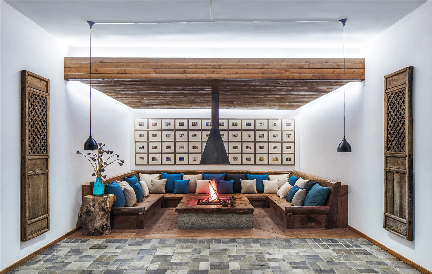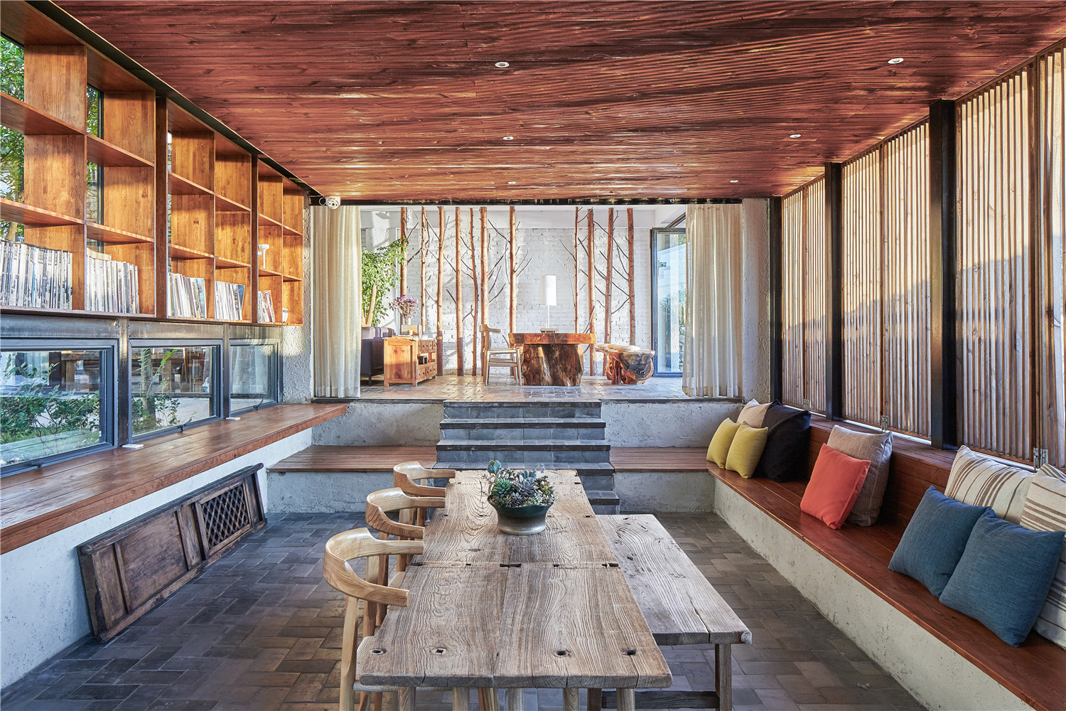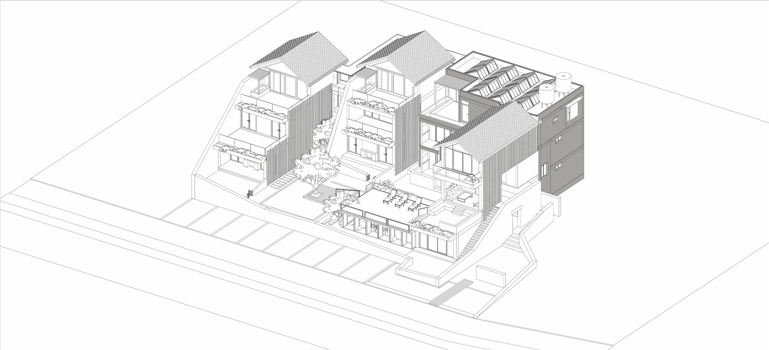它是一處300㎡的農(nóng)宅基礎(chǔ)上改造而成的,建成后的面積達(dá)到1000多平方米。從項(xiàng)目選址策劃、建筑方案及施工圖設(shè)計(jì)、室內(nèi)(包含軟裝、家具設(shè)計(jì)及現(xiàn)場(chǎng)制作)及景觀設(shè)計(jì),施工現(xiàn)場(chǎng)等,整個(gè)項(xiàng)目從最初草圖至施工結(jié)束一共花了兩年半時(shí)間。