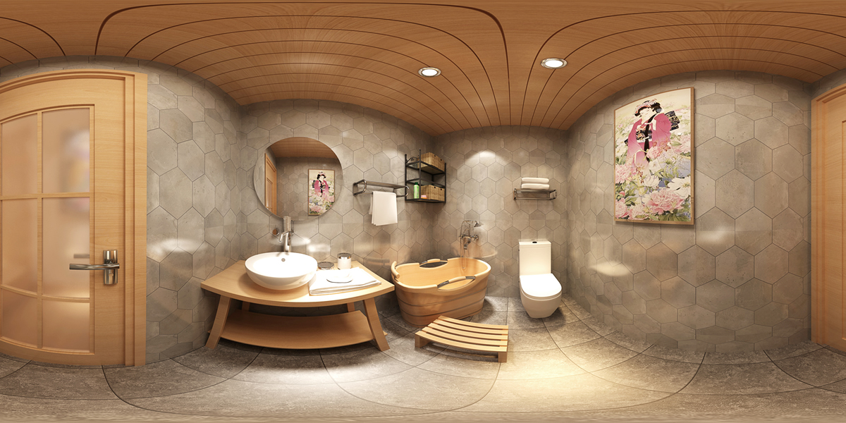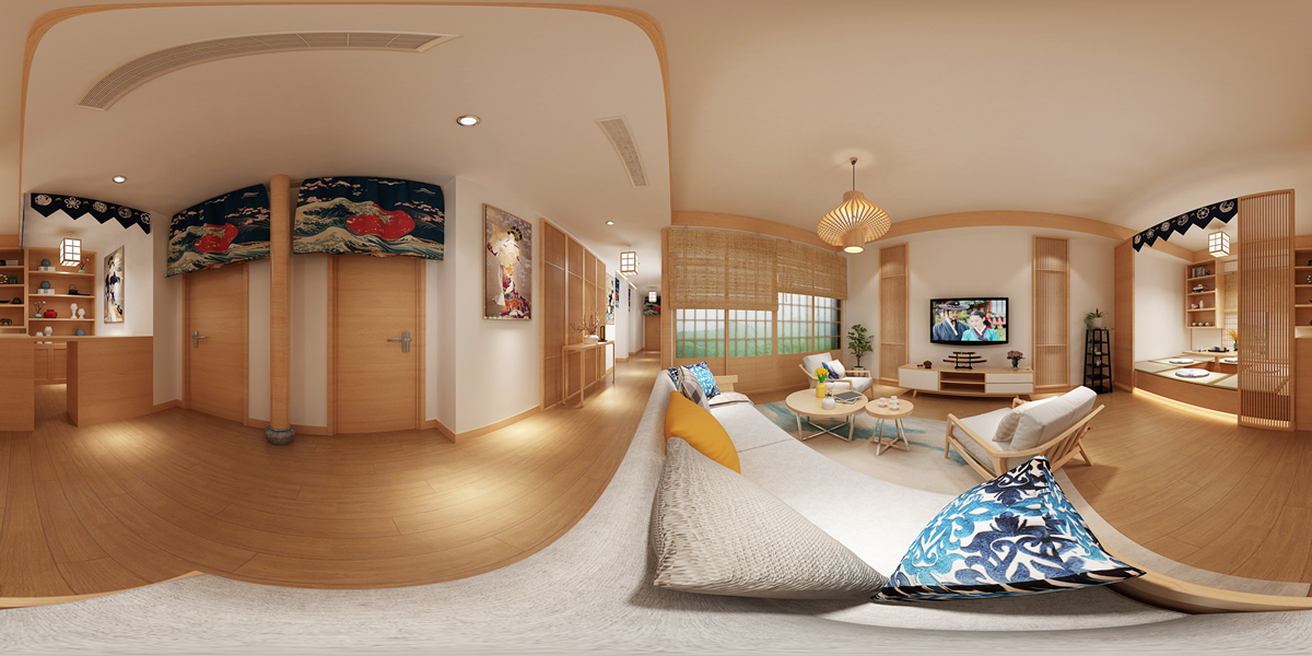 該案例為度假酒店內(nèi)部獨棟民宿裝修。設計師意圖打造日式風格,所選用的材料特別注重自然質(zhì)感,強調(diào)與大自然巧妙的融為一體。傳統(tǒng)的日式風格很少使用金屬材質(zhì)等現(xiàn)代裝修材料,而是將自然界的材質(zhì)大量運用于居室的裝修、裝飾中,本案運用了原木、竹、藤和其他天然材料,形成樸素的自然風格。不斷地借用一些外在的自然景色,意在為居住者的家居生活帶來無限的生機。其外形的簡潔與內(nèi)在的精致,原始和自然風貌的營造,極致的追求一種返璞歸真的意境。