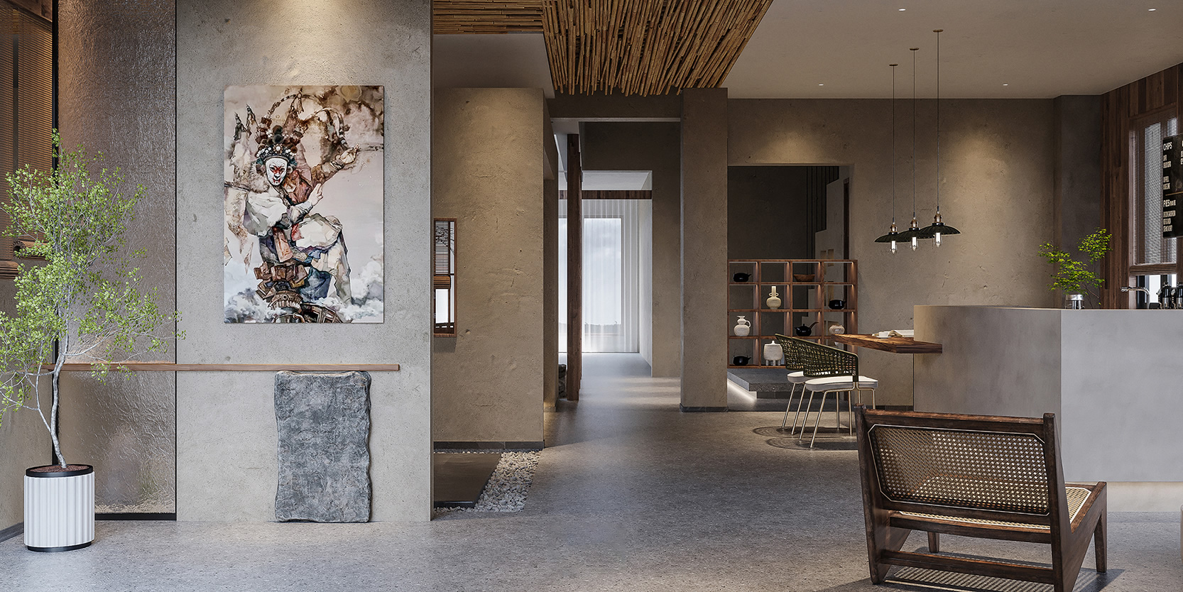 中式美學(xué),大多講究“盈滿則溢”,凡事要留有三分余地,因而在美學(xué)主張上推崇大量留白,疏而不空,滿而不溢,有種恰到好處的分寸感。擯棄繁雜,跳脫了沉悶,以現(xiàn)代簡(jiǎn)潔的設(shè)計(jì)語(yǔ)言,重塑更符合現(xiàn)代人審美的空間藝術(shù),給來(lái)體驗(yàn)的客人提供無(wú)限想象的空間。