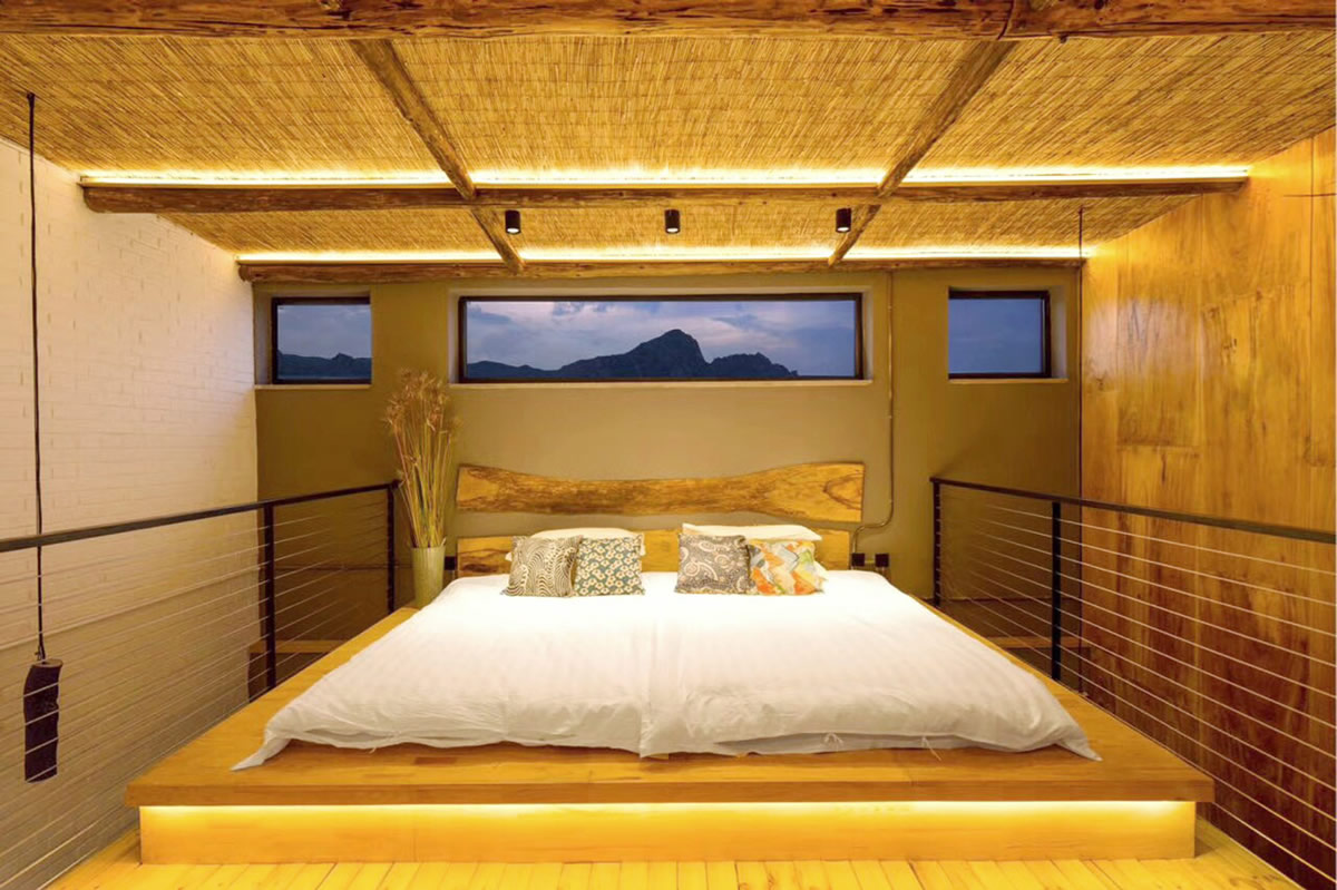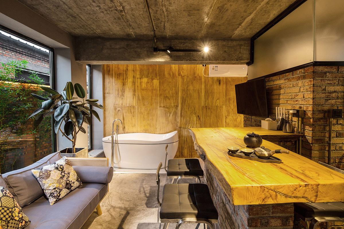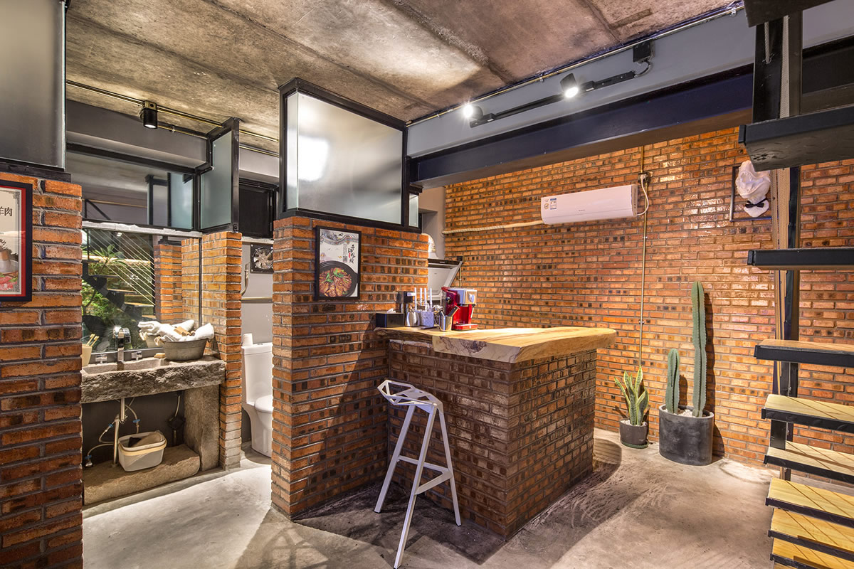 采用了紅磚、水泥等工業(yè)元素,與木質家具和軟裝相融合,創(chuàng)造出別樣的墻面設計,讓整個空間變得與眾不同。