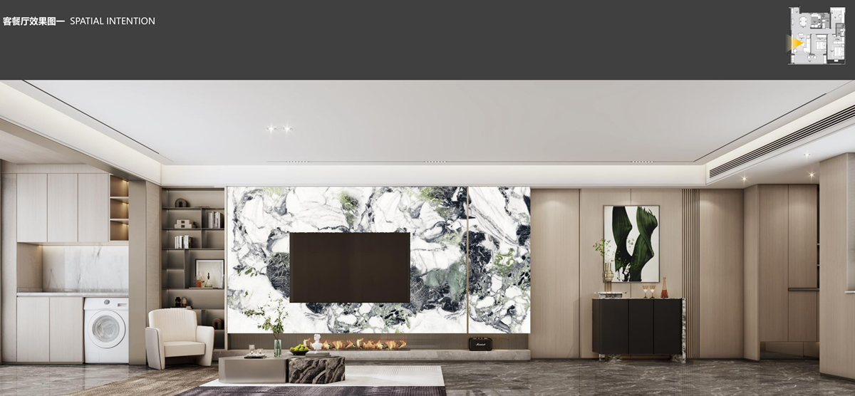本案以米色系為基礎(chǔ)色,神秘內(nèi)斂的青綠色作為點(diǎn)綴色。有人說(shuō),“咖啡色是一種***不會(huì)過(guò)時(shí)的流行時(shí)尚色彩,它是一種穩(wěn)重而不失大氣的色彩!”