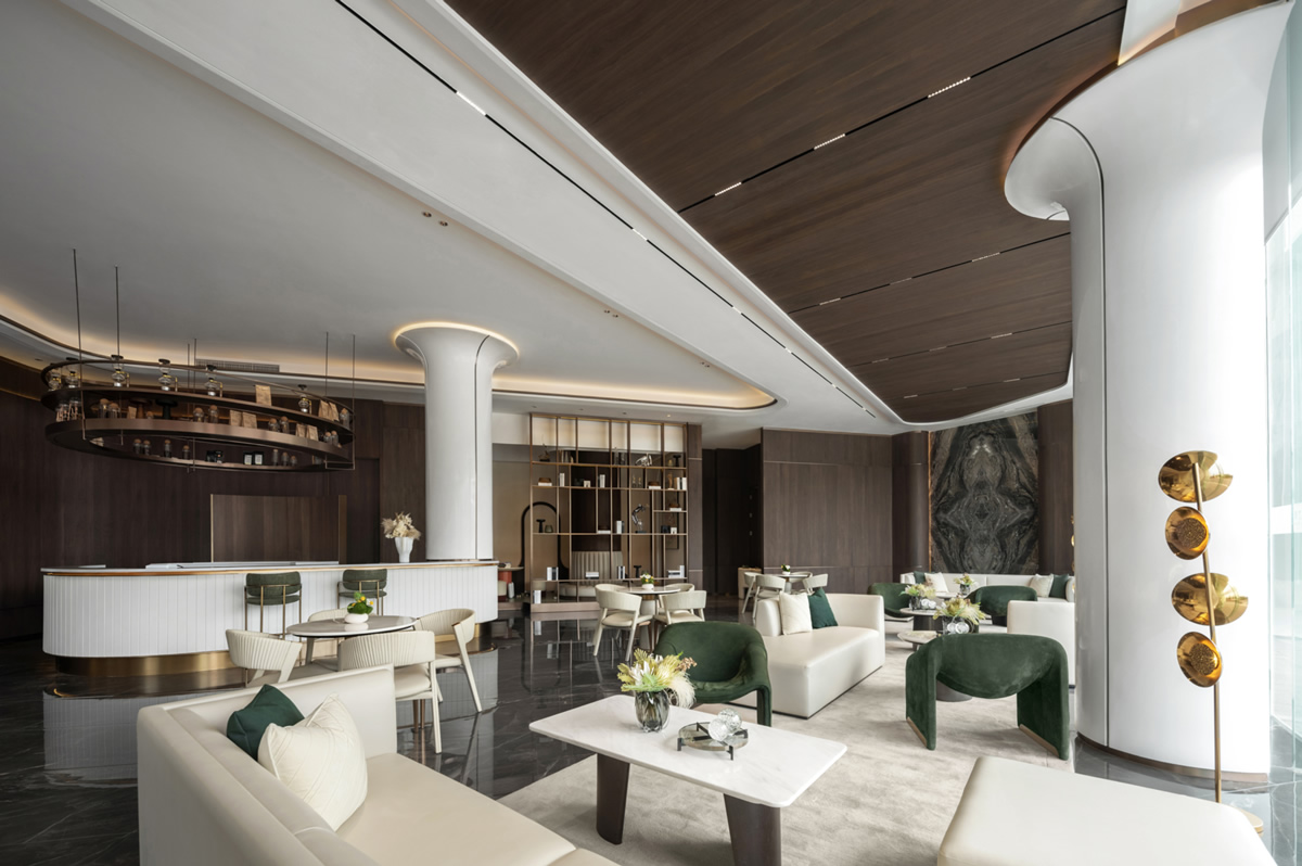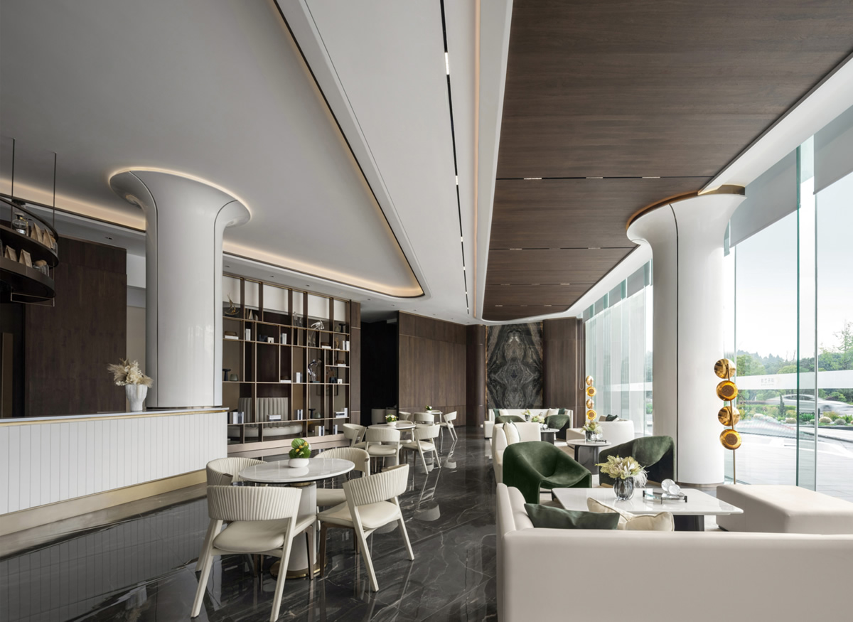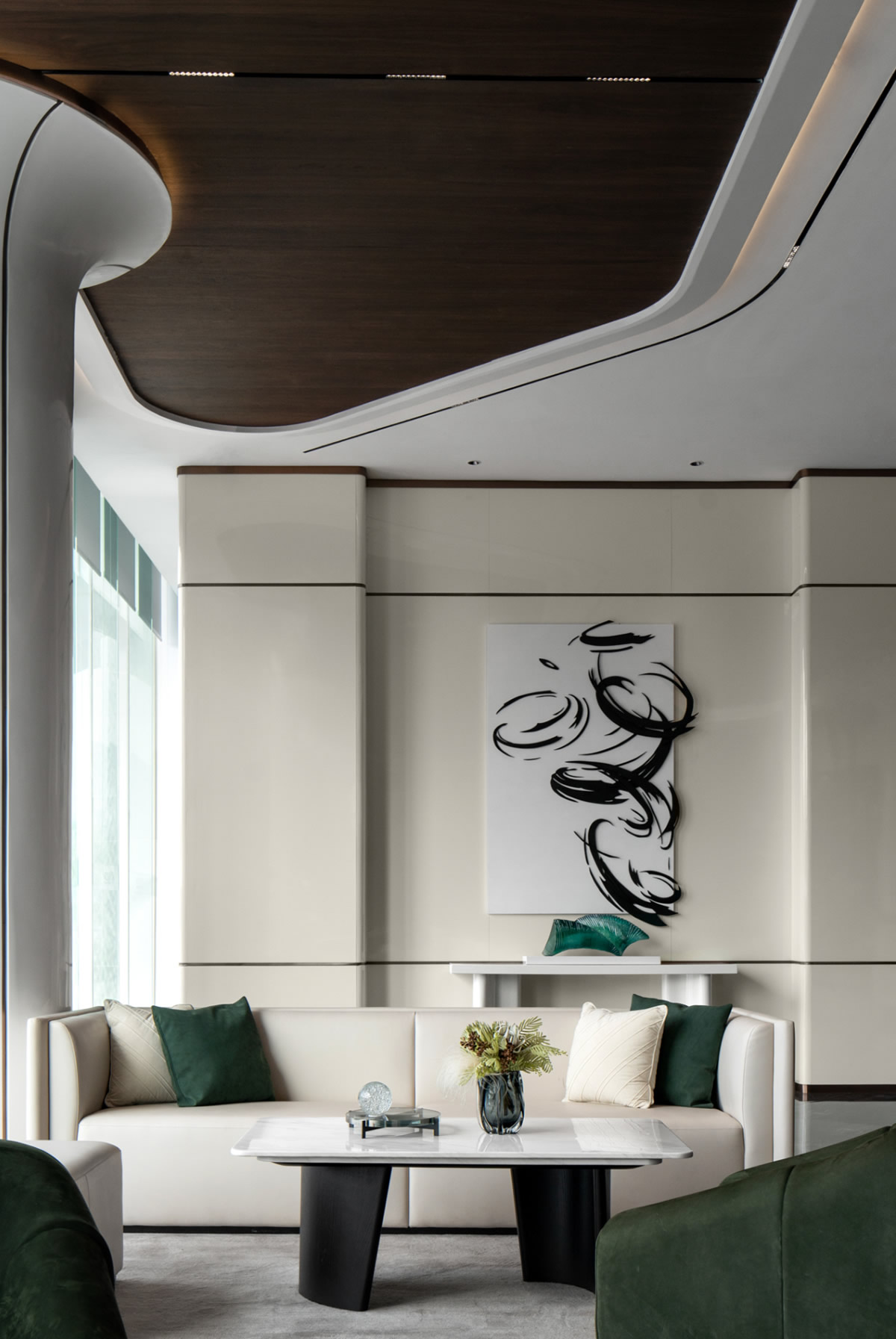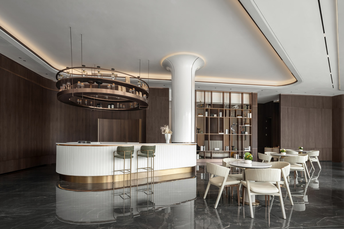 木,自然、純粹、時(shí)尚。空間的天花裝置始終以木作為主角,使弧的柔,弱化了空間因挑高而帶來(lái)的孤寂。禪意的清境在空氣里綻放,自然樸實(shí)色系放大了禪的圓融。