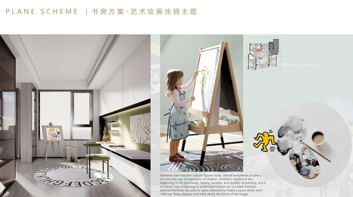 涂鴉元素在今天已經(jīng)成為流行文化中的一部分,在日常生活中幾乎隨處可見;也是兒童學(xué)習(xí)人類符號(hào)表達(dá)的開始。涂鴉是兒童原始的表達(dá)方式,兒童的創(chuàng)作是其感情、智慧、生理、知覺(jué)、社會(huì)性、美感及創(chuàng)造性的直接反映。 空間以涂鴉元素為空間元素,打造一個(gè)能讓每個(gè)孩子對(duì)顏色對(duì)圖像的感知后能自由的暢想和表達(dá)自己空間。