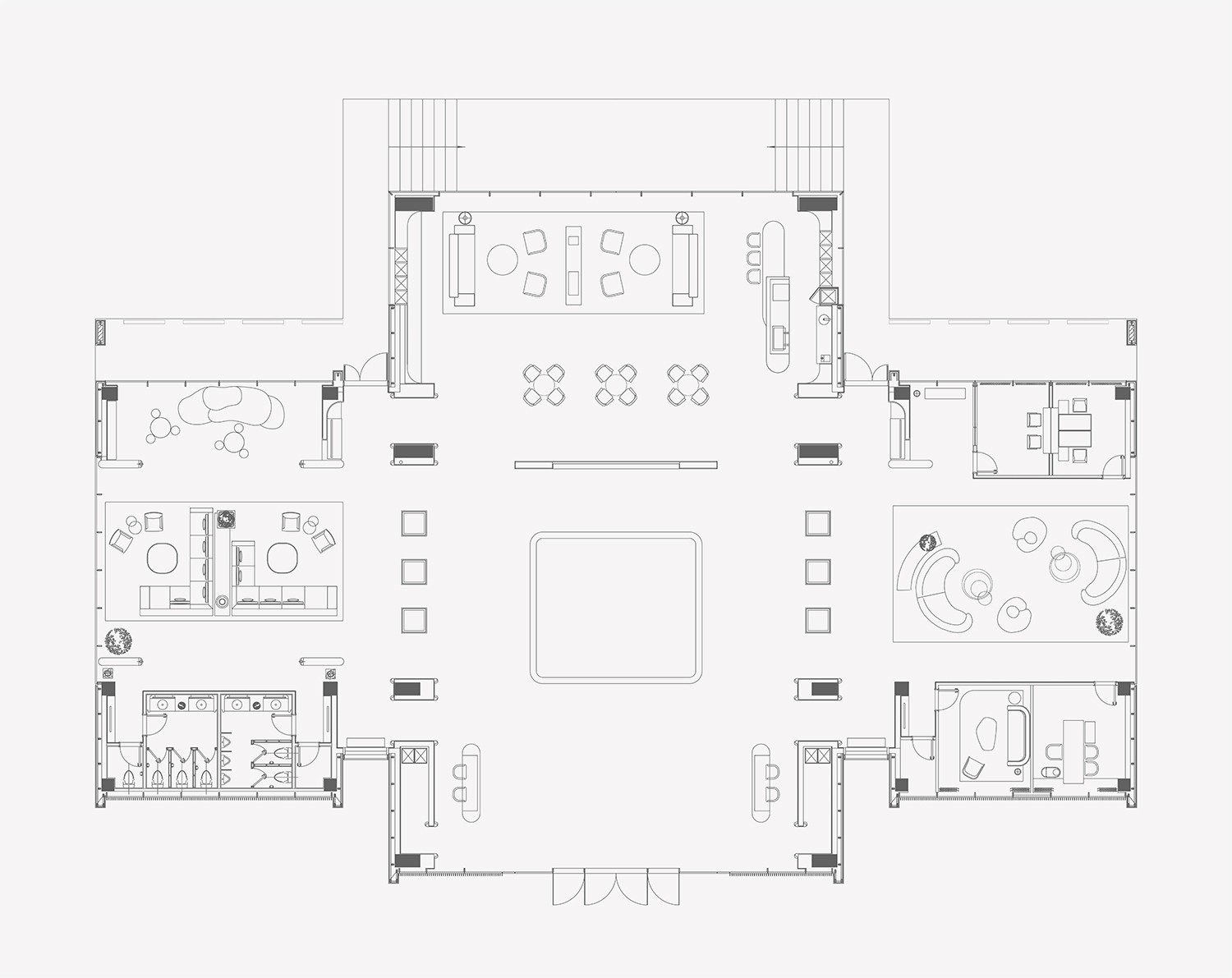 從明清的北京故宮,到中世紀(jì)的西方園林,對稱布局總是能帶給人莊重、威嚴(yán)的感覺。售樓處經(jīng)常運用對稱布局,以在有限的空間里營造出儀式感,表達(dá)出對貴賓的尊崇禮遇。