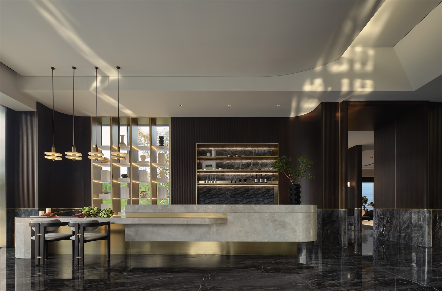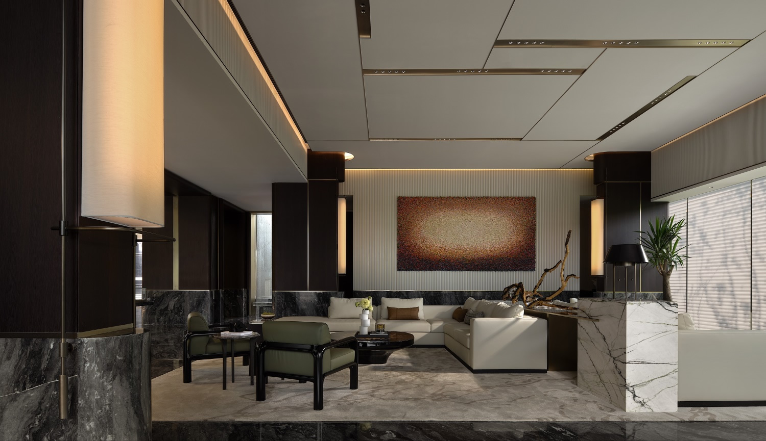 在中國傳統(tǒng)意識當(dāng)中,一望無際的通透從來都不是主流審美。一道屏風(fēng),不止分隔空間功能,更是讓室內(nèi)景致有節(jié)奏的映入眼簾。